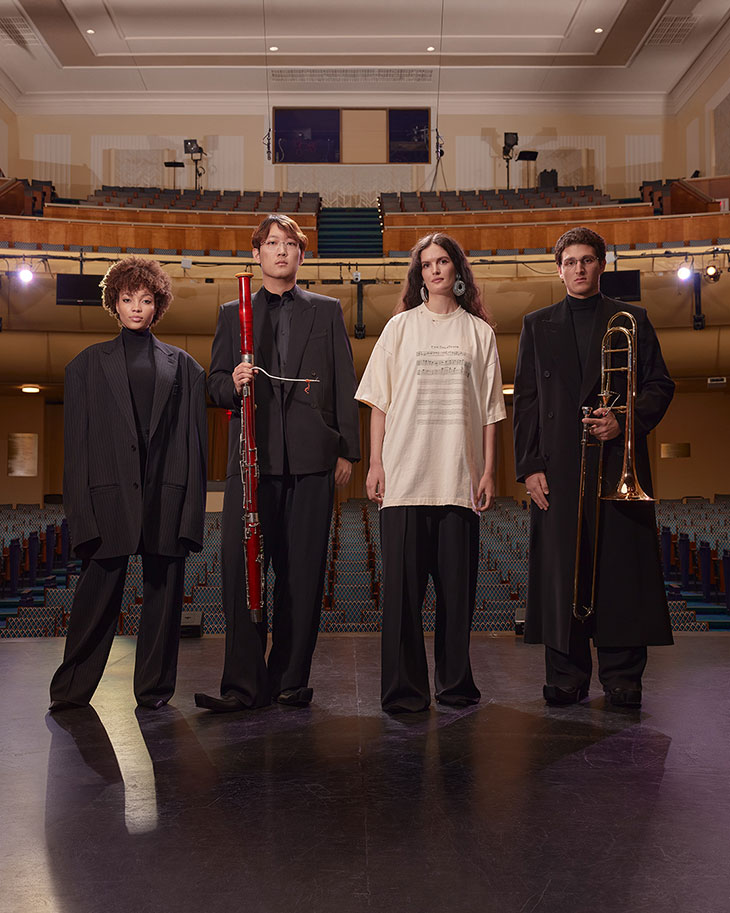 On February 20, 2024, Balenciaga launched a collaboration in honor of the esteemed American composer and arranger, Angelo Badalamenti, who passed away on December 11, 2022. Initiated in May 2020 in partnership with the Manhattan School of Music and his daughter, Danielle Badalamenti, this collaboration includes a curated playlist by Badalamenti, available at balenciaga.com/angelobadalamenti, and a line of merchandise inspired by his score “Torch Theme.” The campaign, photographed and filmed at the Manhattan School of Music, features students and relatives of Badalamenti wearing the designs, merging fashion, music, and tribute. The partnership with the Manhattan School of Music, led by Dr. Reiko Fueting, includes the creation of a master class where students will compose works inspired by the late composer’s style.