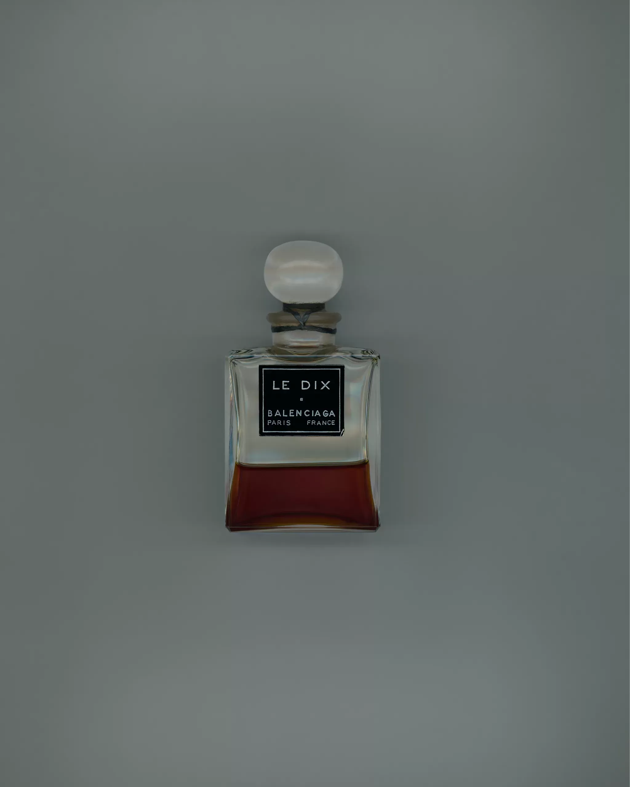 The collection pays tribute to Balenciaga’s storied past, beginning with a meticulous recreation of Le Dix, the brand’s debut perfume first introduced in 1947. Archivists spent over 15 years searching for an original bottle, eventually succeeding and using it to reconstruct the fragrance in detail. Each bottle in the new line echoes the vintage design, with a globular glass cap, hand-tied ribbon and Balenciaga’s iconic grey packaging.