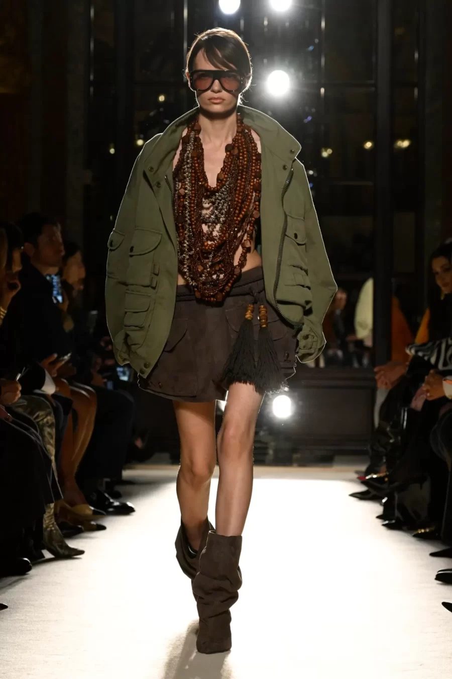 The designer also revived his sand-moulded experiments, transforming them into sculptural bustiers and bras that signalled a new creative phase: less armour, more freedom. As he admitted backstage: “People always talk about the Balmain Army, but this time it is not about fighting. It is about confidence and freedom.”