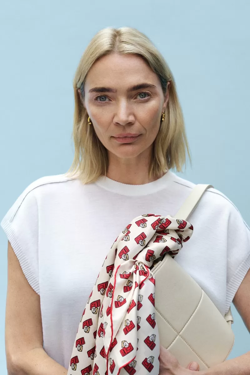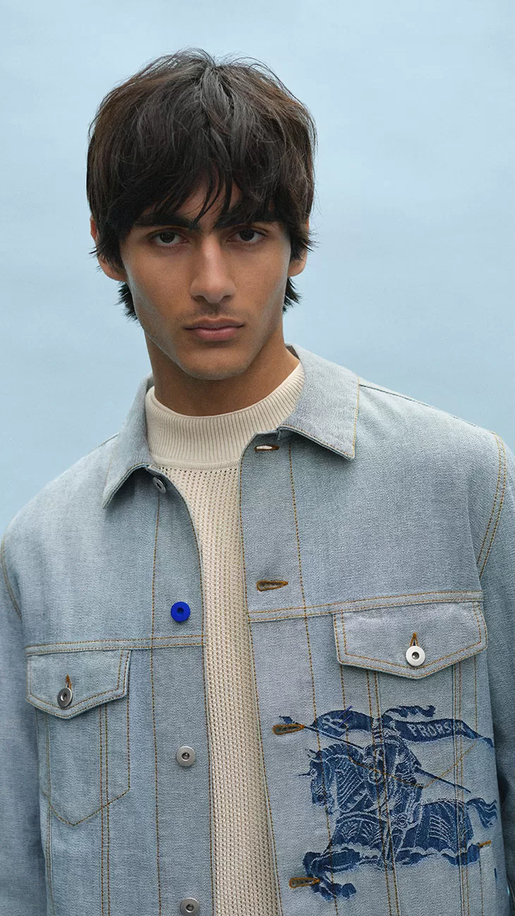 The outerwear includes the iconic trench coat with Burberry’s check pattern peeking out from under the collar, as well as denim, trucker, and bomber jackets, many featuring Burberry’s knight and horse logo. The tops are subtle, with lightweight sweaters dominating the classic style, while a face-hugging turtleneck sweater introduces a new way to wear a tried-and-true style. Simple trousers prevail in this campaign, but a pleated skirt with the Burberry check remains elegant and makes a statement.