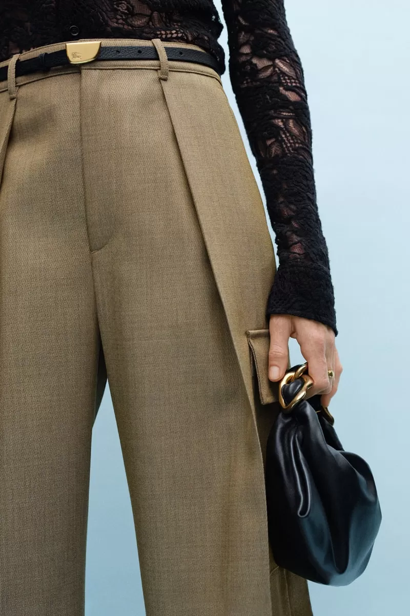 The collection elevates classic looks and Burberry’s iconic elements through quality fabrics and tailoring. With a subdued color palette that includes earthy tones of brown, beige, green, and blue, the garments stand out for their understated elegance rather than flashy elements.