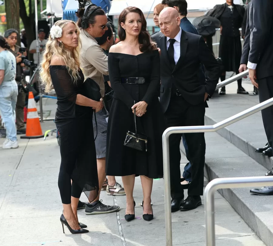 Carrie Bradshaw stuns with a dark and elegant look during the filming of a funeral scene in ‘And Just Like That…’