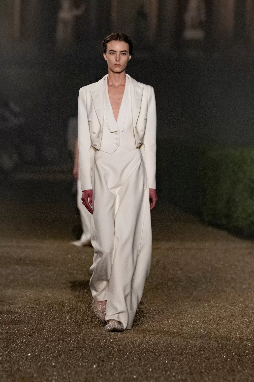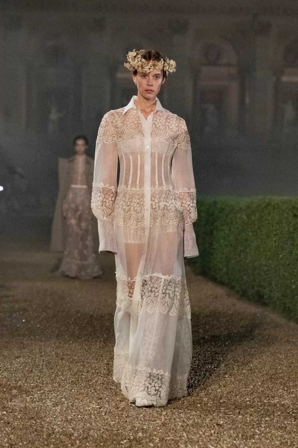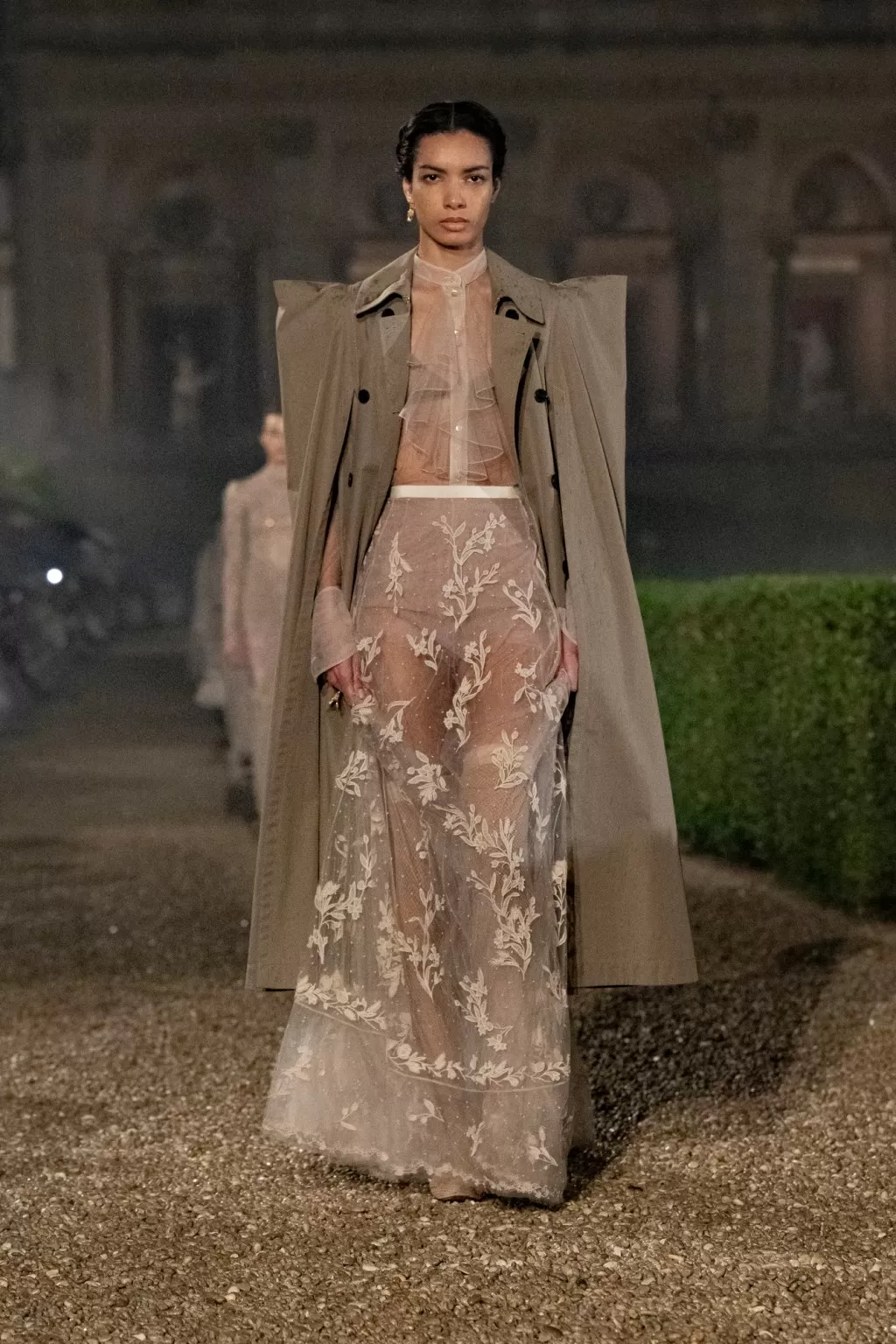 The show was accompanied by a film production directed by Matteo Garrone, and Chiuri collaborated with the legendary costume house Tirelli to recreate outfits from iconic films such as La Dolce Vita.