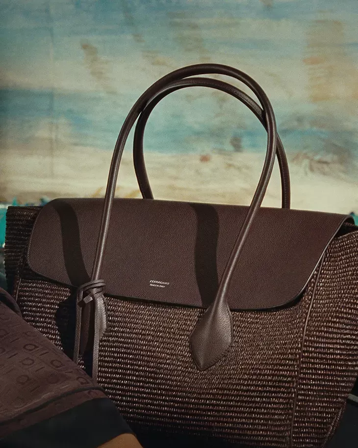 Creative Director Maximilian Davis embraces a sensory narrative in which accessories—cork-heeled sandals, woven Gancini bags, and summer loafers—take centre stage. “We wanted to tell a very Italian story, but with a Hollywood soul,” says Davis. “Alice Rohrwacher understands how to make the past feel current.”