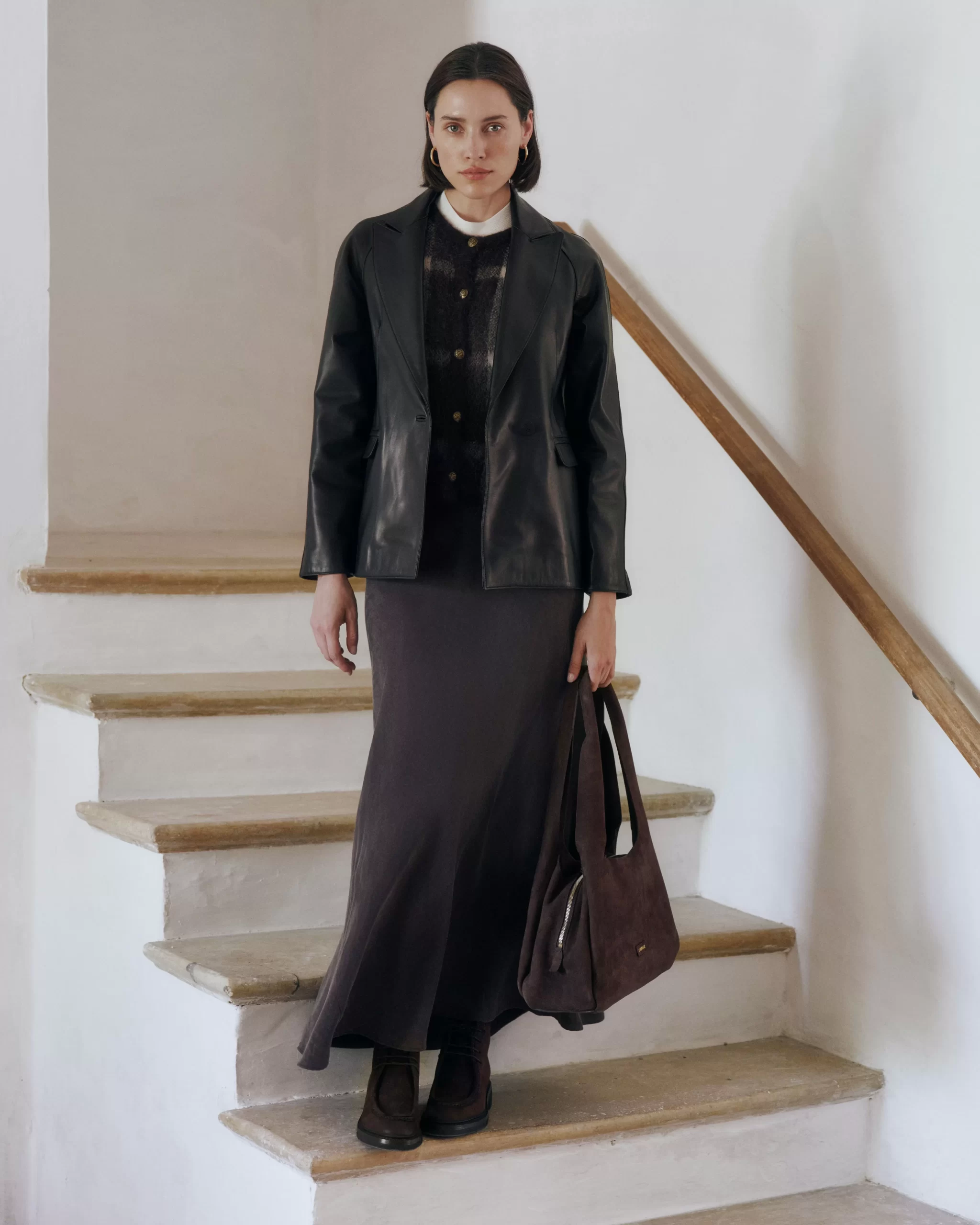 The Hug and Soft bags return with new interpretations: palm prints evoking escapist glamour and leather-lined versions offering a surreal softness. The collection also features key seasonal pieces such as futuristic wedge sandals in glossy patent leather, ethereal silk dresses, and hand-assembled flowers that elevate ready-to-wear into an emotional dimension.