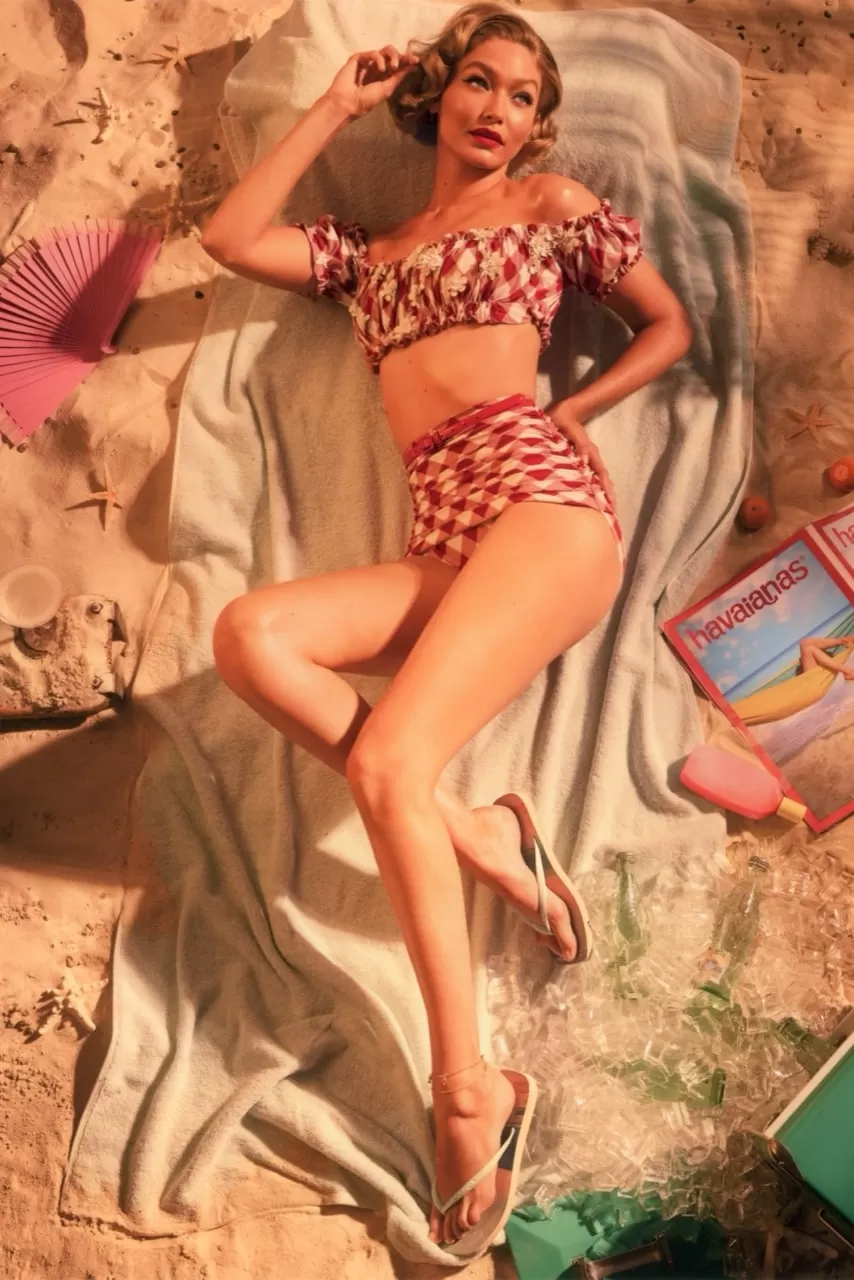 Gigi Hadid is shaking up Havaianas with her new capsule collection, blending pin-up glamour with beachy vibes. Now available worldwide!