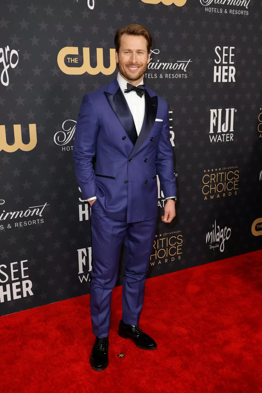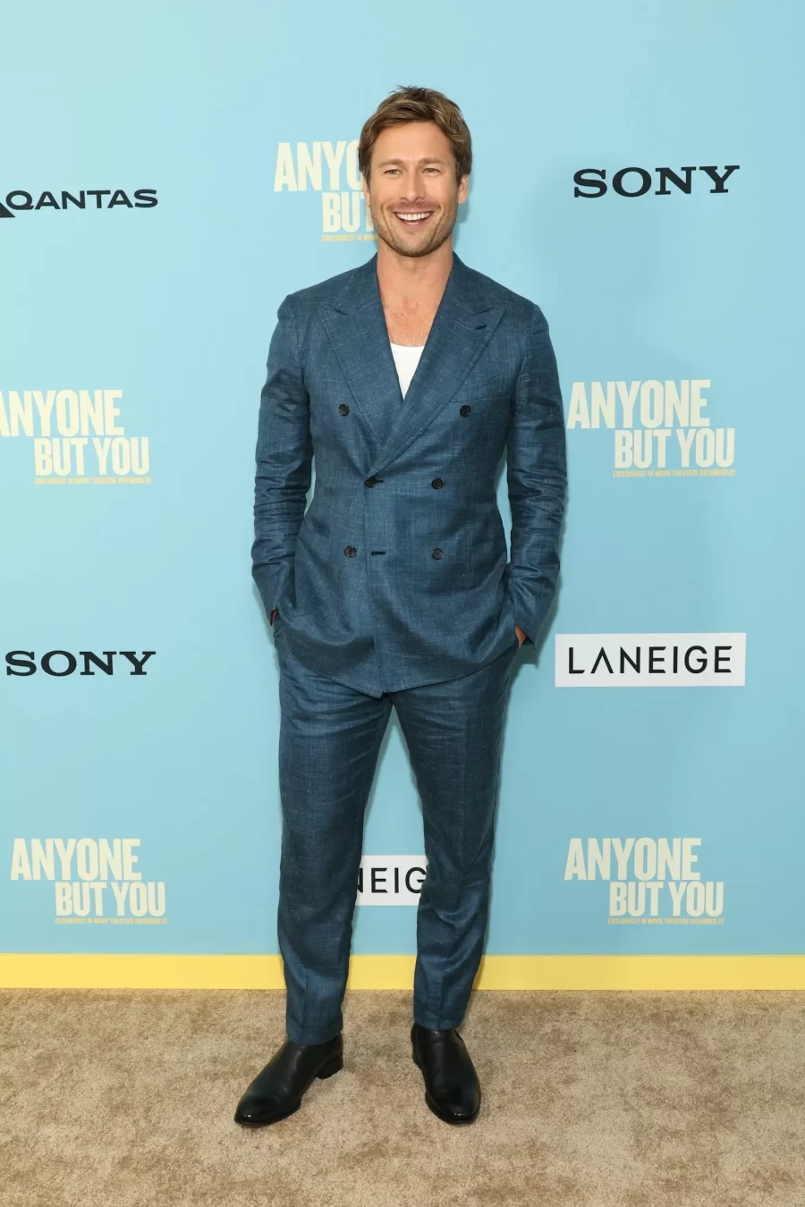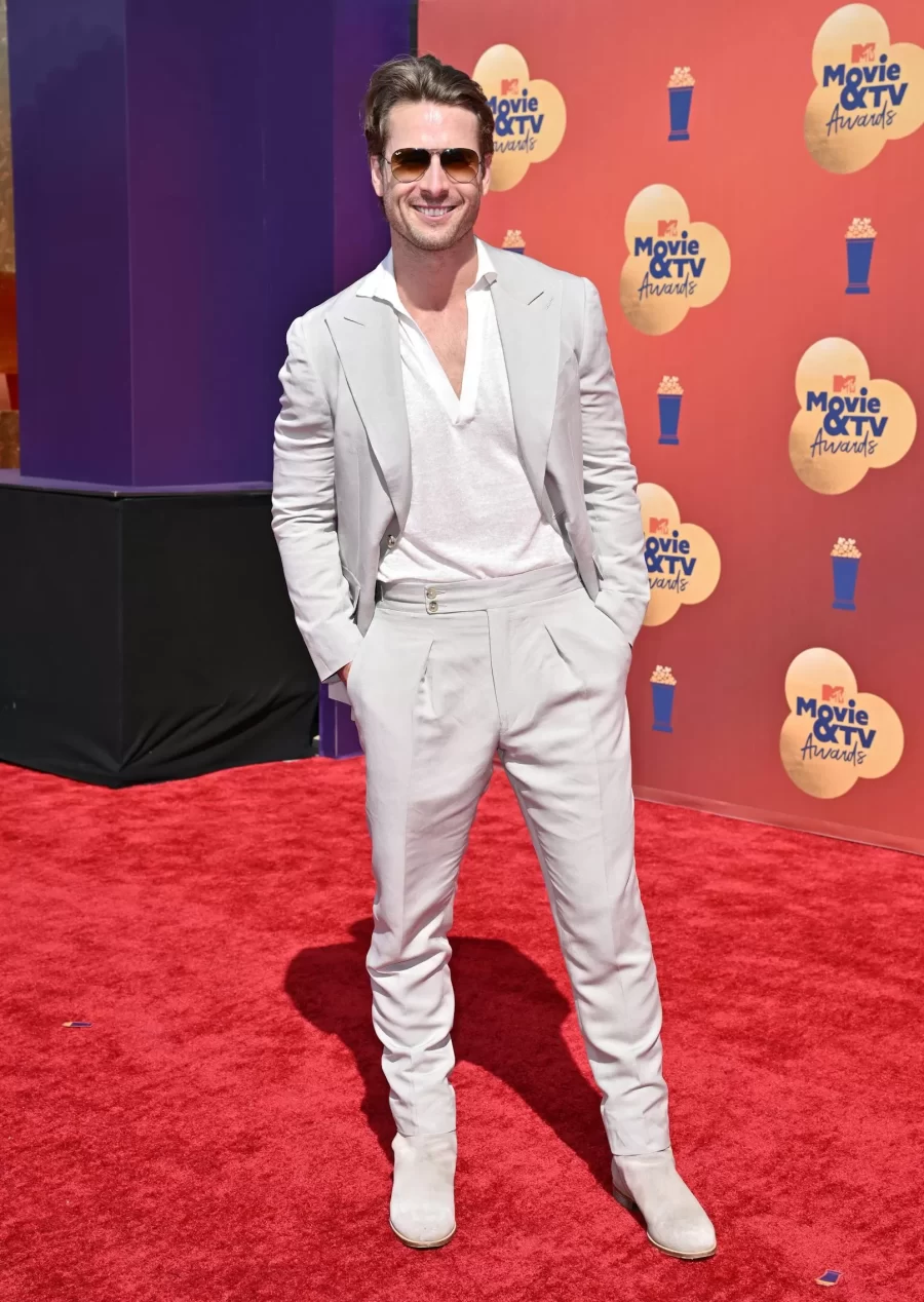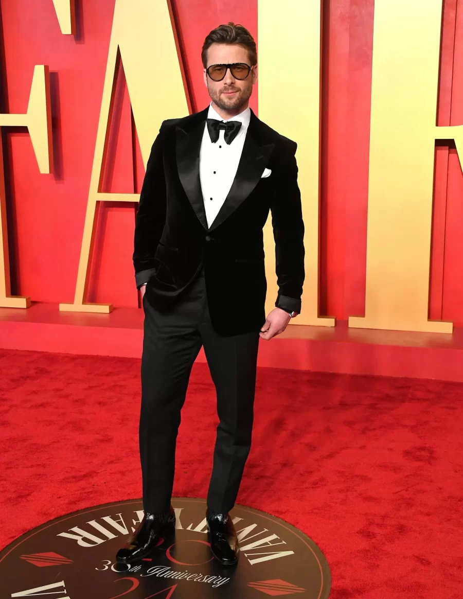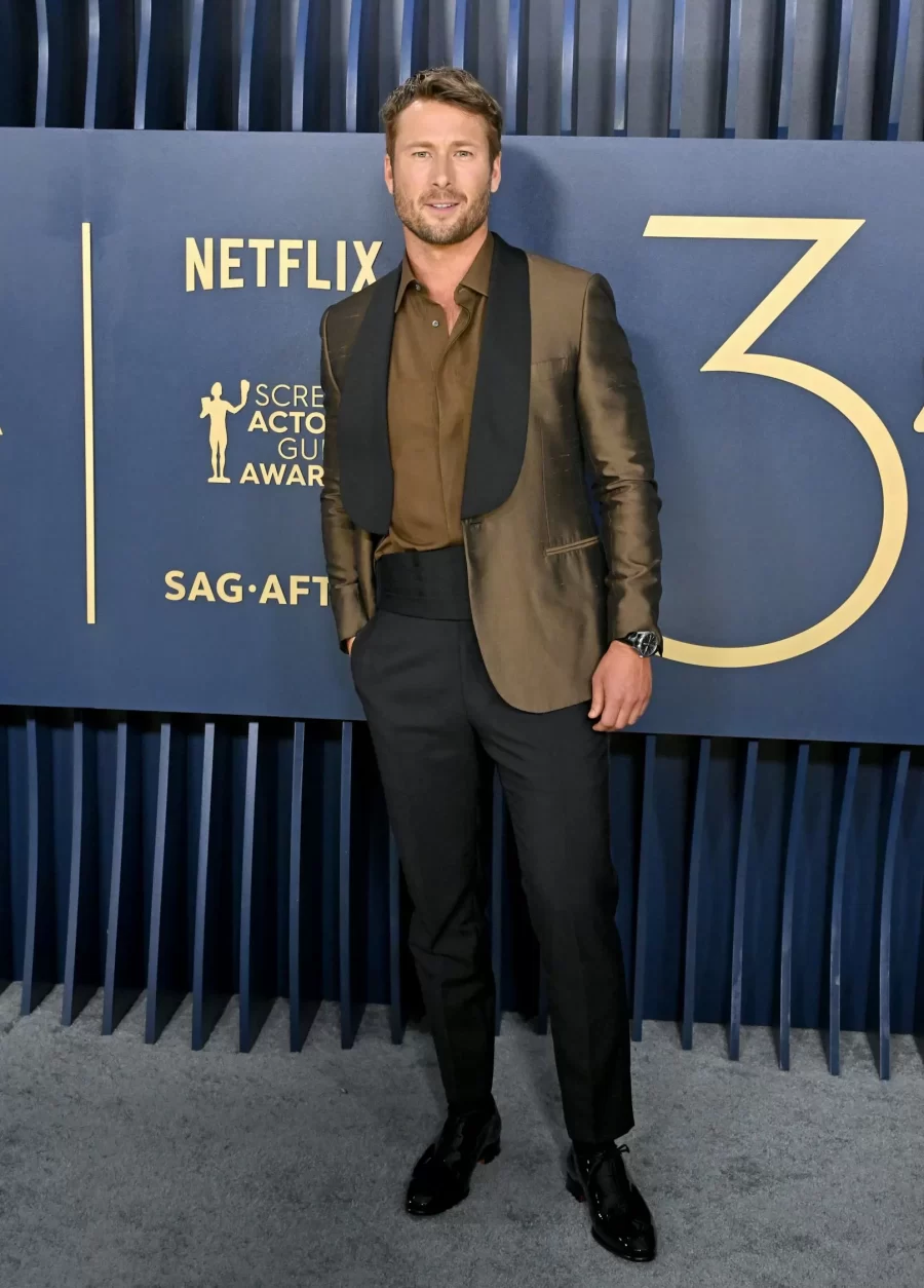Glen Powell, Hollywood’s rising star, captivates with his on-screen charisma and impeccable style on the red carpet.