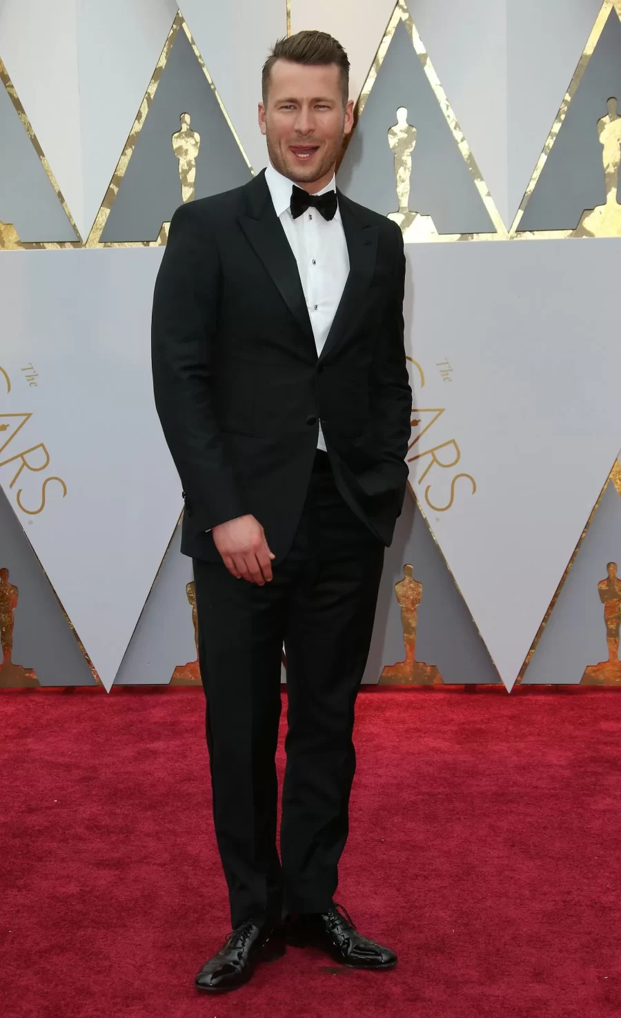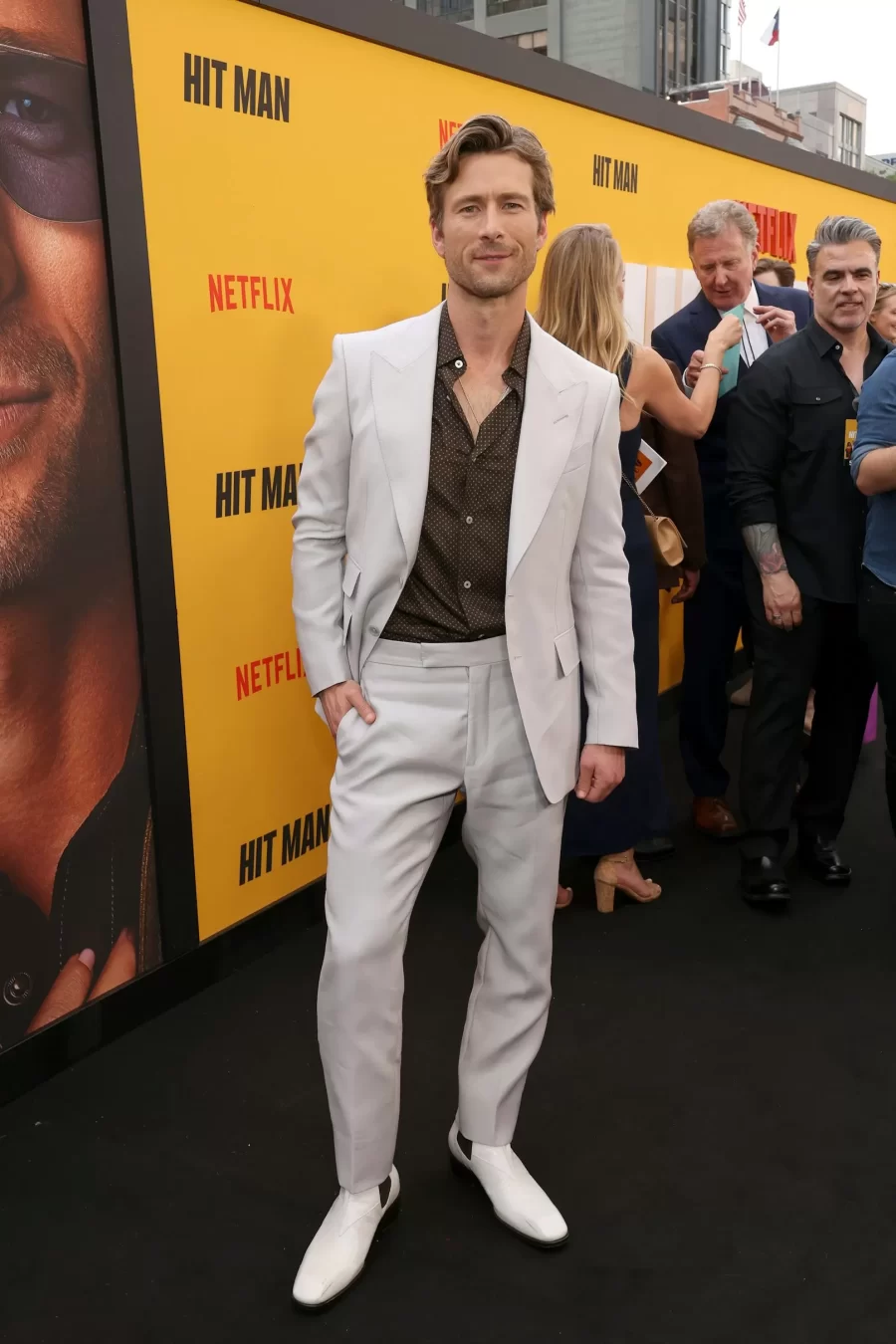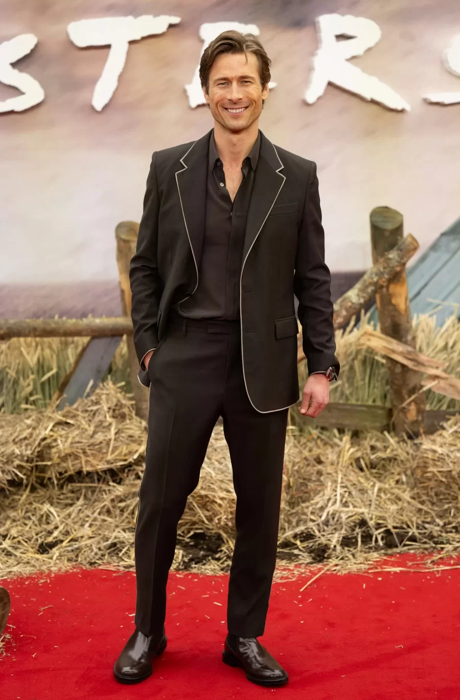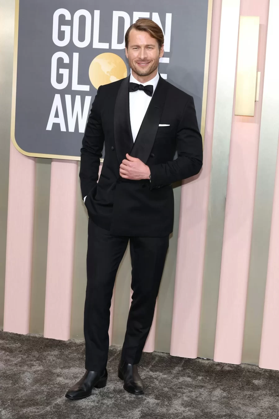 Glen Powell, Hollywood’s rising star, captivates with his on-screen charisma and impeccable style on the red carpet.