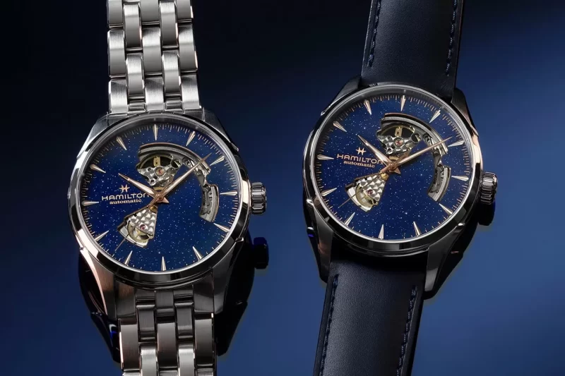 Hamilton continues to impress with its innovative Jazzmaster Open Heart collection, now enhanced with two new models that evoke the grandeur of the universe through aventurine-inspired dials. Following the release of five models last year, the brand expands its line with these versions that capture the essence of a starry sky.