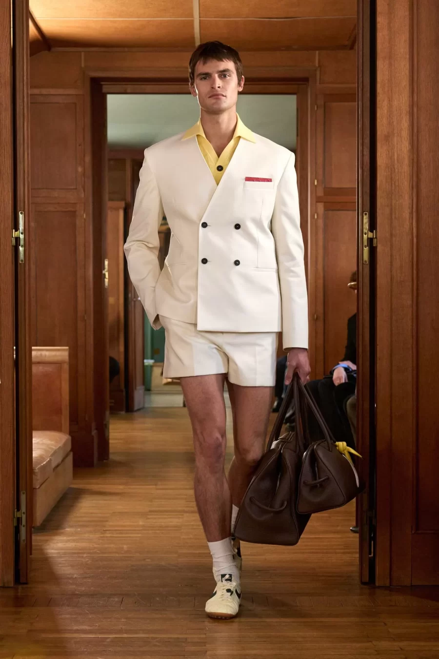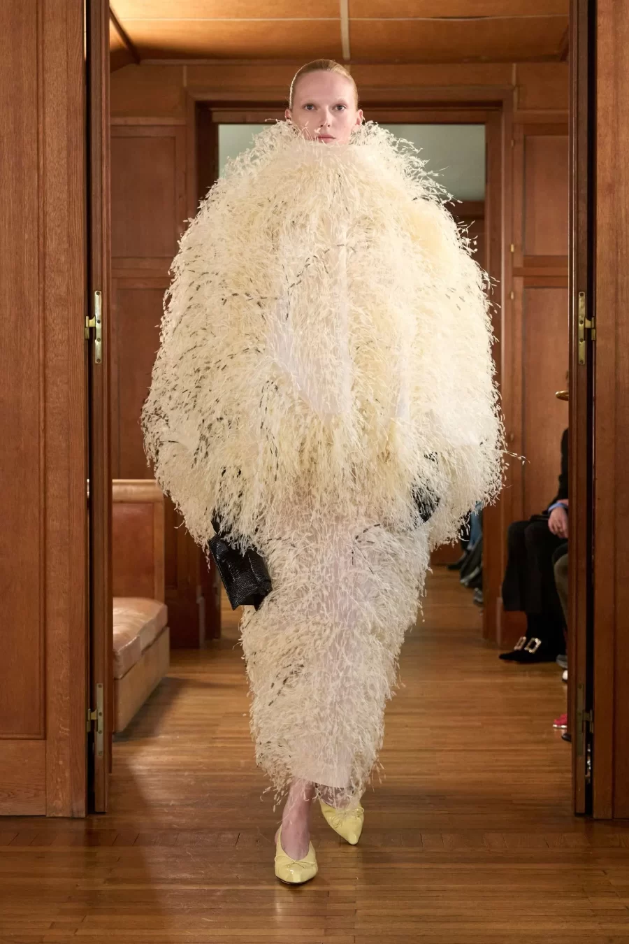 What stood out the most was Jacquemus’ innovative approach: the entire show was filmed using iPhones, with 17 iPhone 16 Pro Max cameras placed strategically to capture every angle of the event. According to Jacquemus himself, the collection aims to showcase “our silhouettes in the intimacy of the apartment,” creating a more personal and direct connection with the audience.