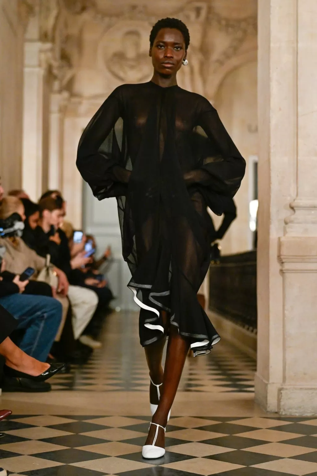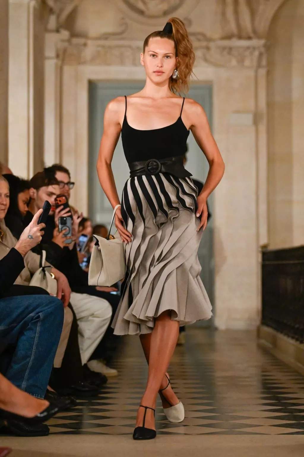 The tone was set even before the first look appeared. Invitations arrived with a wide-tooth comb and instructions for achieving the now-iconic palmier hairstyle — a rigid, high ponytail recalling the exaggerated nightlife glamour of eighties Paris. What could have seemed like a playful gimmick revealed itself as a clear statement of intent: theatrical, nostalgic and deliberately over-the-top.