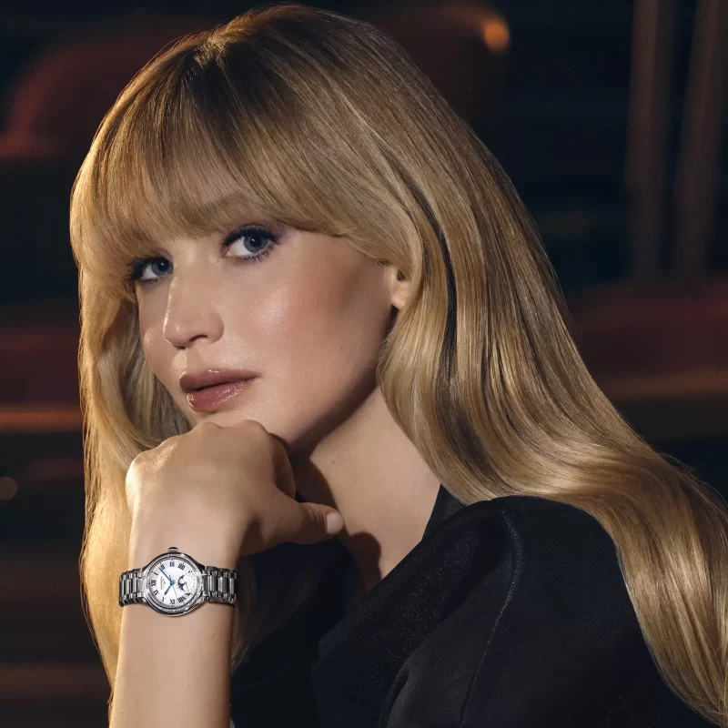 “The new PrimaLuna watch feels timeless. It embodies the kind of classic elegance that seamlessly transitions from day to night, from casual to formal,” says Lawrence, reinforcing the connection between her natural grace and the sophistication of Swiss watchmaking.