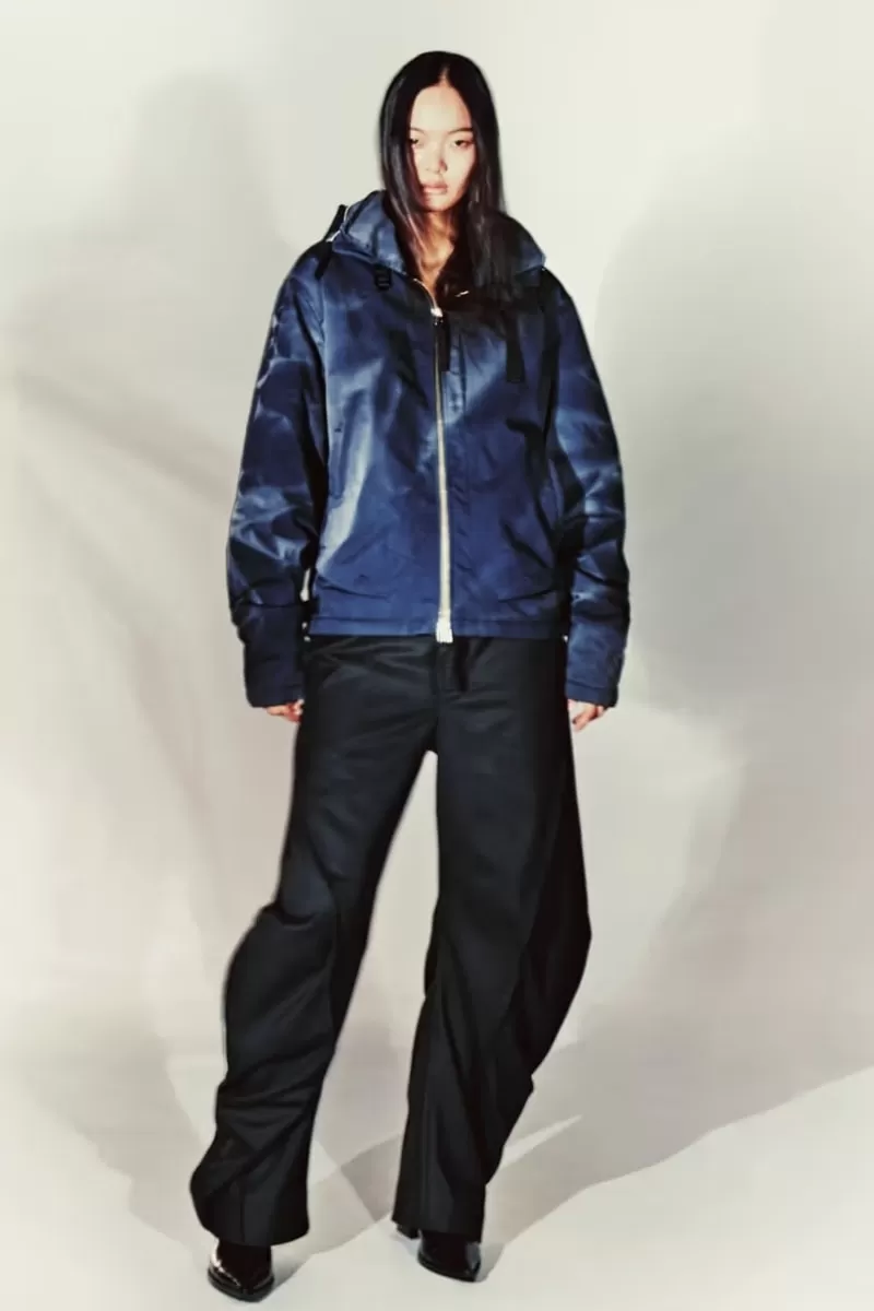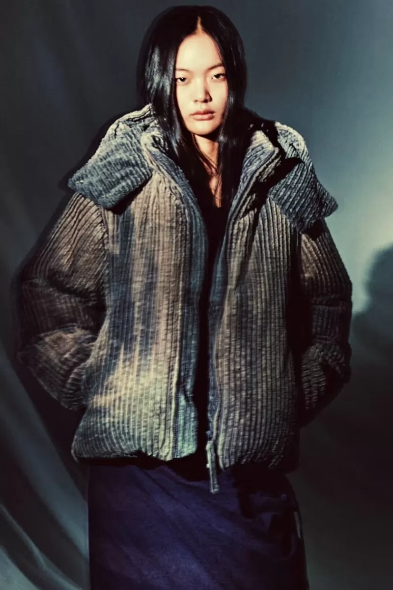 Designer Jiyong Kim translates his technical mastery into pieces that challenge conventional proportions: structured coats, asymmetrical cuts, knotted details and deconstructed silhouettes merge with the brand’s signature sun-bleached finish. Layering and relaxed volumes dominate the stylistic narrative, while unexpected seams and slanted cuts lend rhythm and depth to the ensemble.