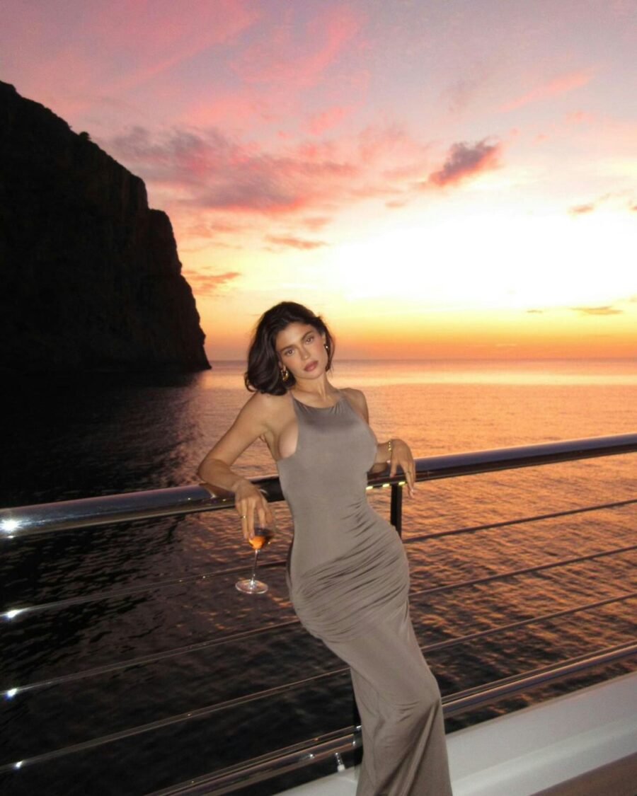 Their vacation style didn’t stop there: Kylie also rocked an intense red dress, an unreleased Khy bikini set, and shared a sisterly moment with Kendall as they sang Billie Eilish’s new song, “L’Amour de ma vie,” while sipping Spanish beer. It seems the Jenner sisters remain big fans of sheer dresses, even as their overall style has evolved toward more neutral and logo-free looks