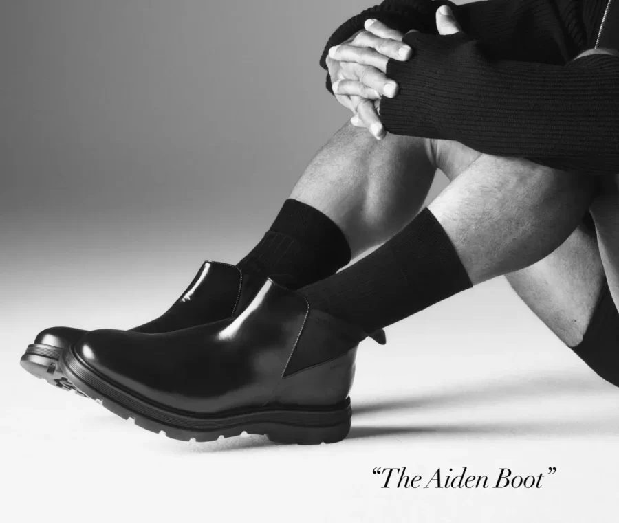 In the promotional images, Mark models the Aiden boots, a design inspired by the classic Chelsea style with a stretch-infused shaft and lightweight sole, as well as the Adam boots, a lace-up style also featuring stretch details and a durable sole.