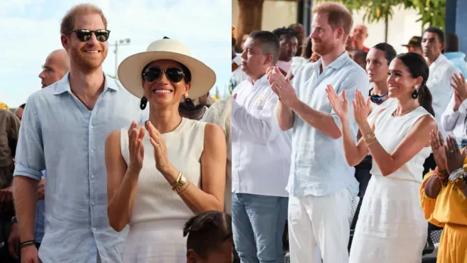 Meghan Markle dazzles in Colombia with Princess Diana’s Cartier Tank watch, complementing her elegant minimalist outfit.