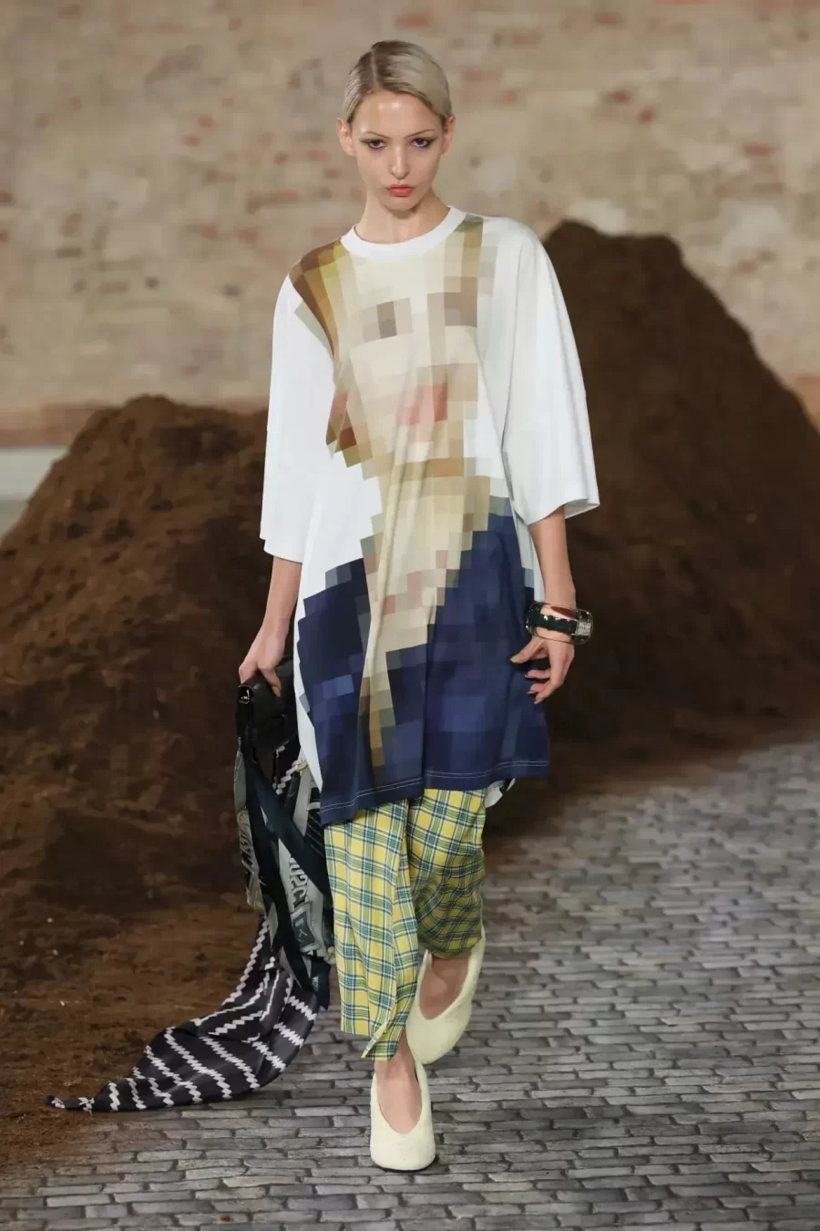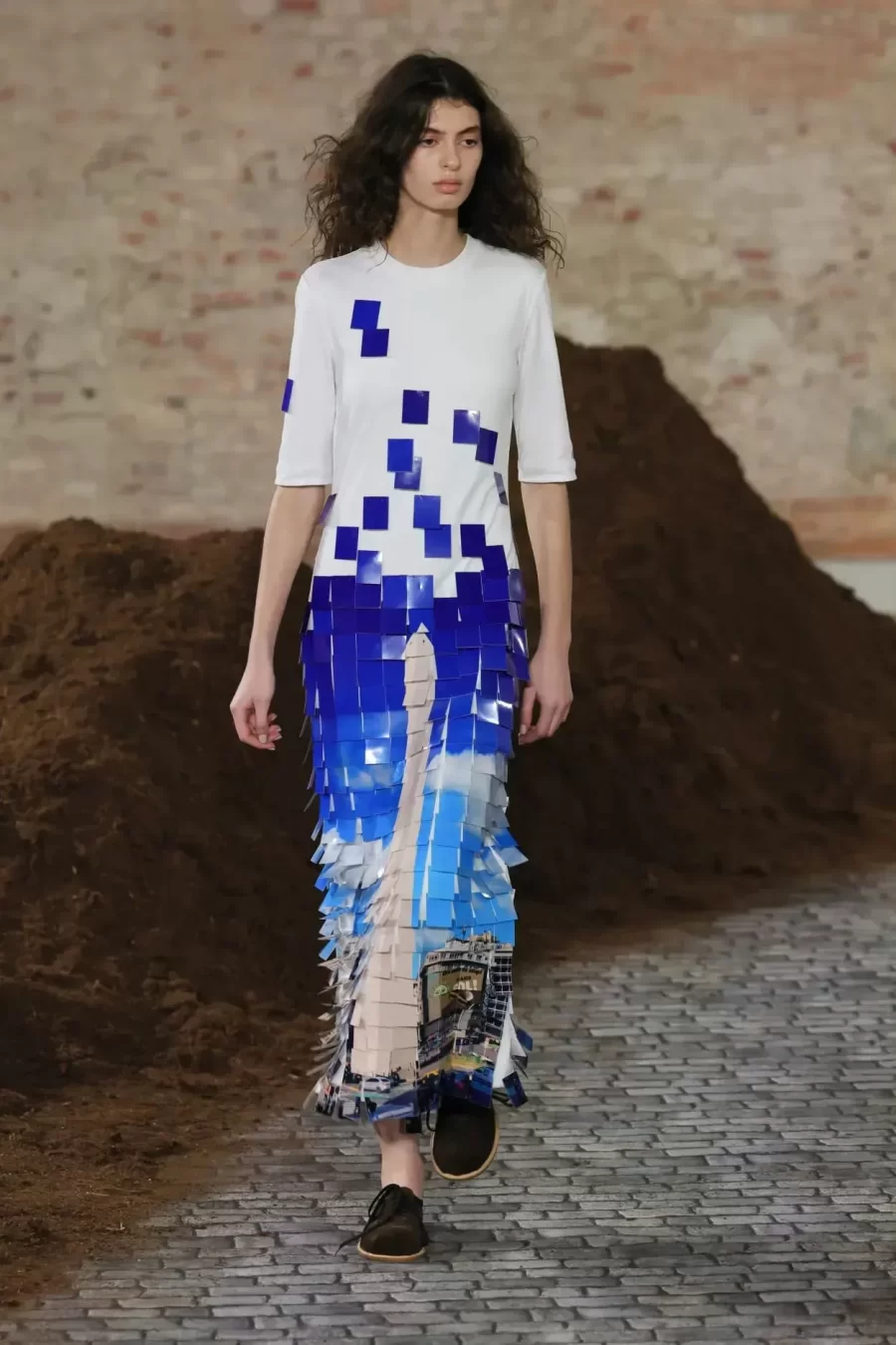 A similar shift occurred with the Obelisk. Reimagined as a structured dress, it moved from monument to everyday symbol. The same site of World Cup celebrations, economic protests and quiet mourning was reinterpreted as haute couture. It was not a tourist postcard; it was urban memory translated into luxury.