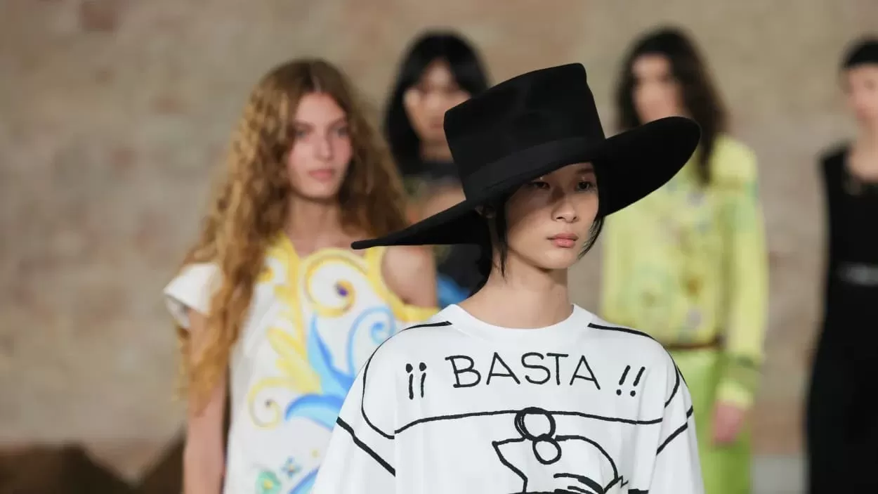 In purely fashion terms, the proposal preserved Moschino’s DNA: controlled theatricality, precise silhouettes and a constant dialogue between irony and elegance. This time, however, the irony carried cultural weight.