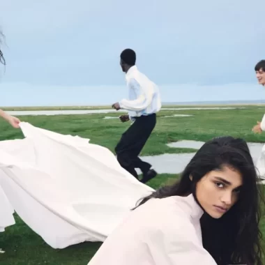 ‘Collezione 0’ culminates with a model in a sunny garden, waving a colorful flag with a smiling face, blending modern fashion with playful elements. Through the lens of Willy Vanderperre and Adrian Appiolaza’s vision, Moschino celebrates joy in the everyday, inviting everyone to find moments of happiness in their daily lives.