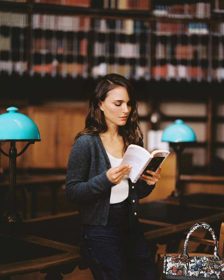 Filmed within the historic walls of the Salle Labrouste, the main reading room of the National Library of France in Paris, this episode offers a unique insight into Portman’s literary world. Viewers have the opportunity to discover the books that have captured her heart, including Todd Haynes’ ‘Chimères Américaines’ and the widely acclaimed ‘My Brilliant Friend’ by Elena Ferrante. Each selection is carefully placed in her Dior Book Tote, highlighting the bag’s blend of practicality and style.
