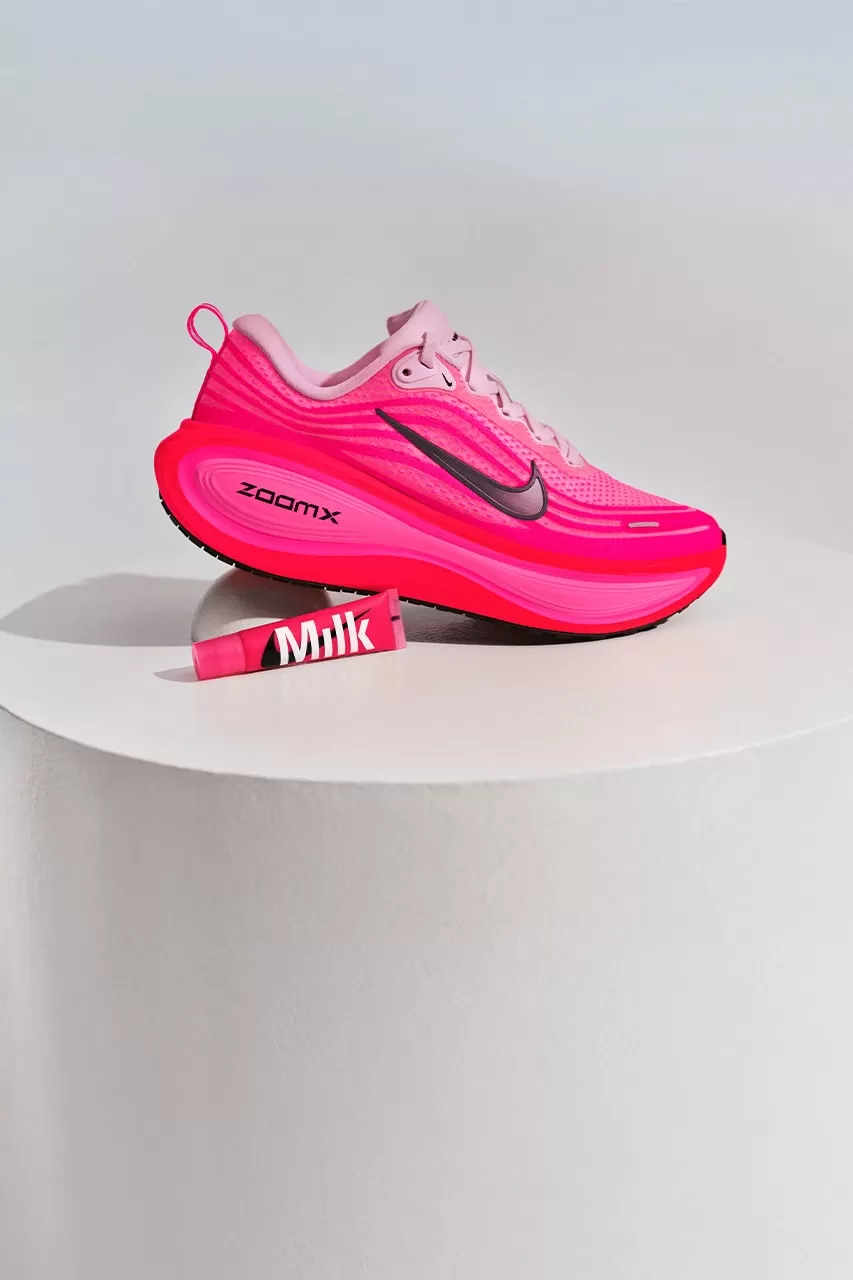 Sportswear and beauty collide in one of the year’s most unexpected partnerships. Nike and Milk Makeup have released a joint drop that blends style, innovation and performance: the Nike Vomero Plus Hyper Pink trainers paired with a matching tinted lip balm, the new Balmade.