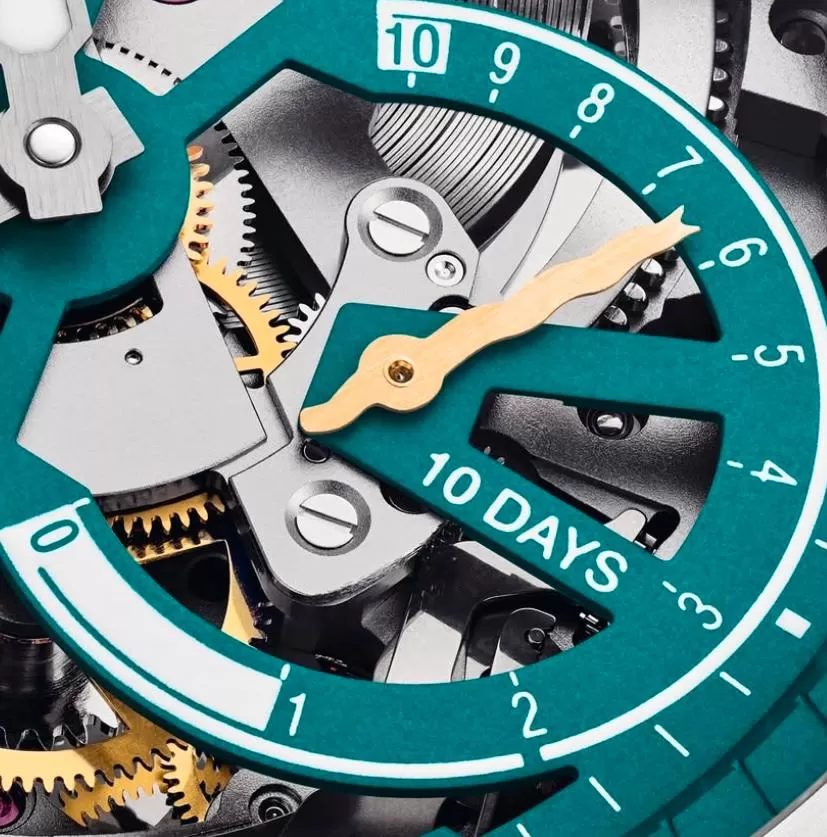 This timepiece is perfect for celebrating the Lunar New Year, with its robust yet lightweight titanium form, embodying a fusion of elegance and strength. One of the standout details is its non-linear power reserve indicator, with a golden hand shaped like a snake’s tongue, a nod to the symbol of the ‘Year of the Snake.’