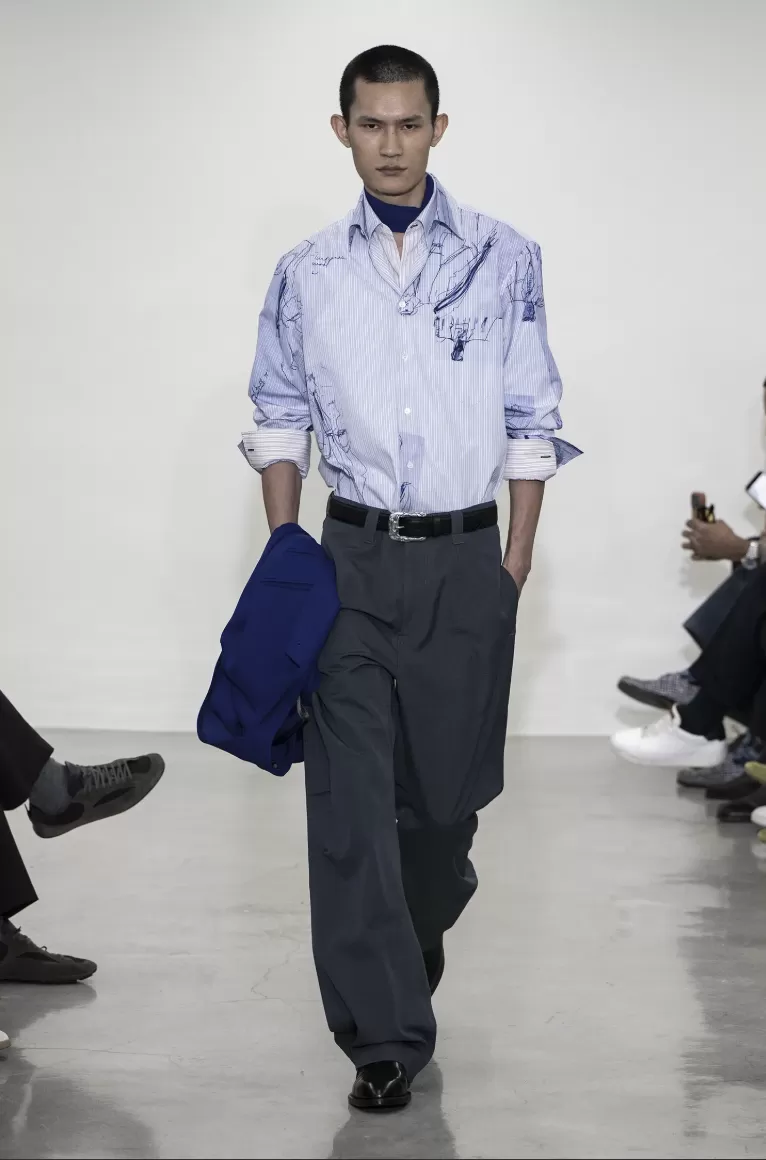 The change of city is significant. Choosing Milan positions the brand within a culture where cut, fabric and construction remain foundational values. Within this context, Smith rejects archival nostalgia. Working closely with Sam Cotton, the newly appointed Head of Men’s Design and a long-time collaborator, he revisits nearly five decades of his own archive — over 5,000 garments housed in Nottingham — not as history, but as dialogue.