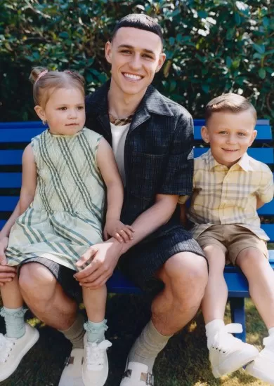 Phil Foden and his children feature in Burberry’s heartfelt Father’s Day campaign, celebrating style, family, and British tradition.