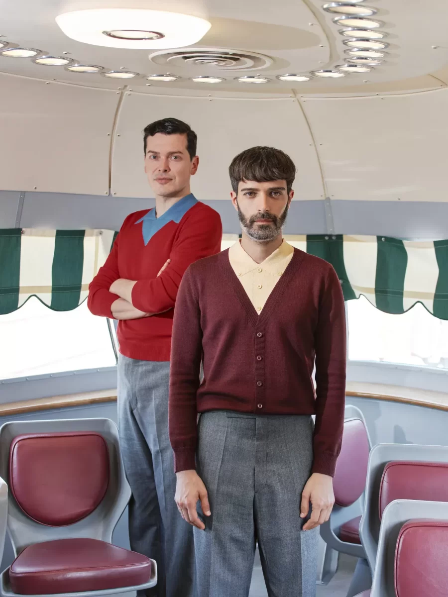 Simone Farresin and Andrea Trimarchi of Formafantasma aboard the Arlecchino train. Courtesy of Prada.