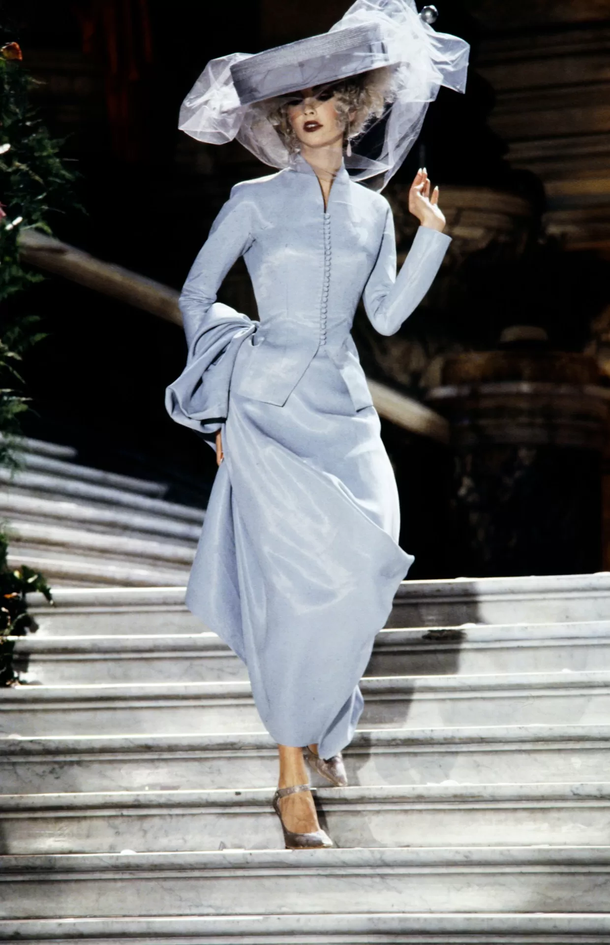 Designed with a voluminous and airy silhouette, this hat is more than just a statement piece—it’s a nod to the elegance of bygone eras. From Edwardian garden hats of the early 1900s to bold runway looks of the 1970s, Parker’s accessory masterfully blends nostalgia and modern flair.