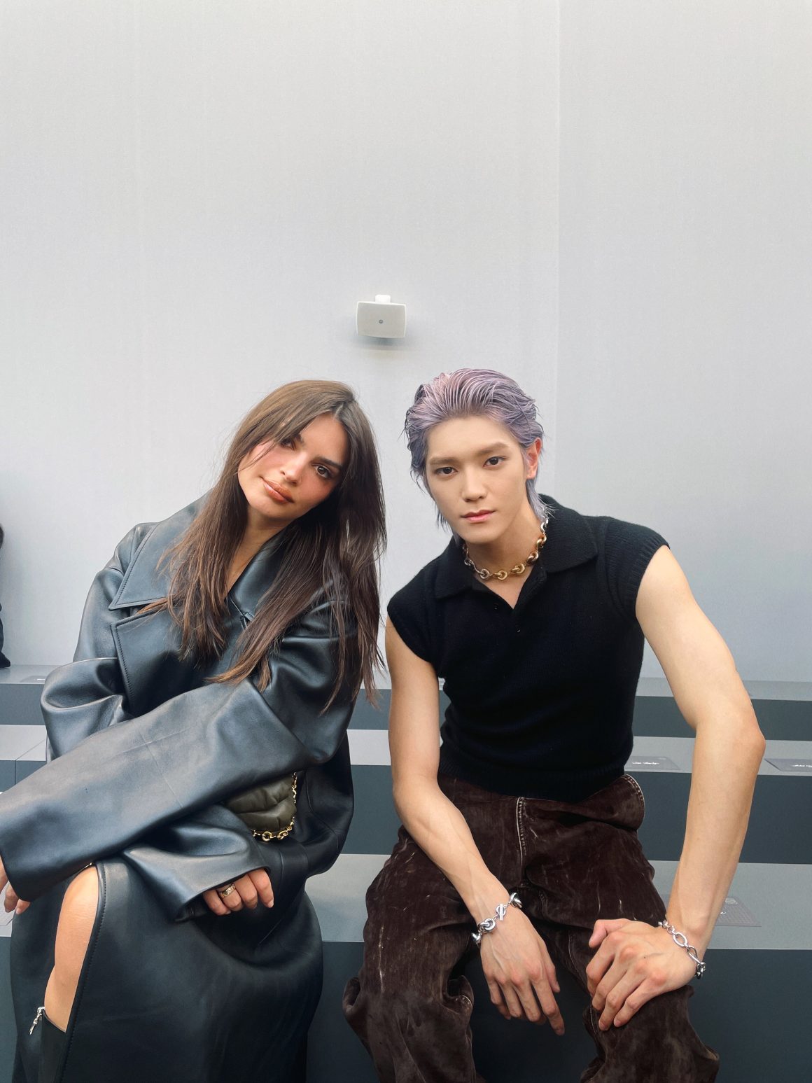 In addition to Taeyong, Loewe’s parade also featured other notable guests from the entertainment and fashion industry Successful singer and songwriter Rauw Alejandro was among the attendees, along with model Emily Ratajkowski and talented actors Manu Rios, Kit Connor, and Martiño Rivas, among others.