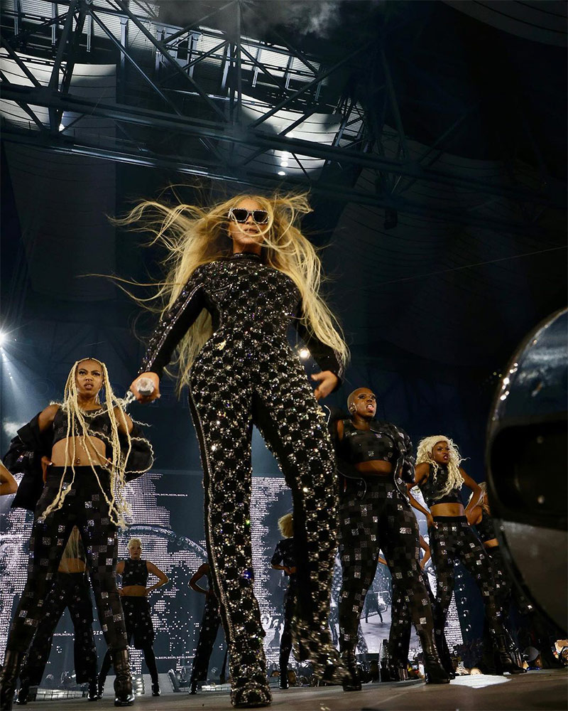And, of course, a standout roundup of Beyoncé’s best looks would be incomplete without featuring her own brand, Ivy Park. She debuted a stunning new collection on stage during her tour’s Amsterdam show, with both herself and her backup dancers dressed head-to-toe in neon pink ensembles.