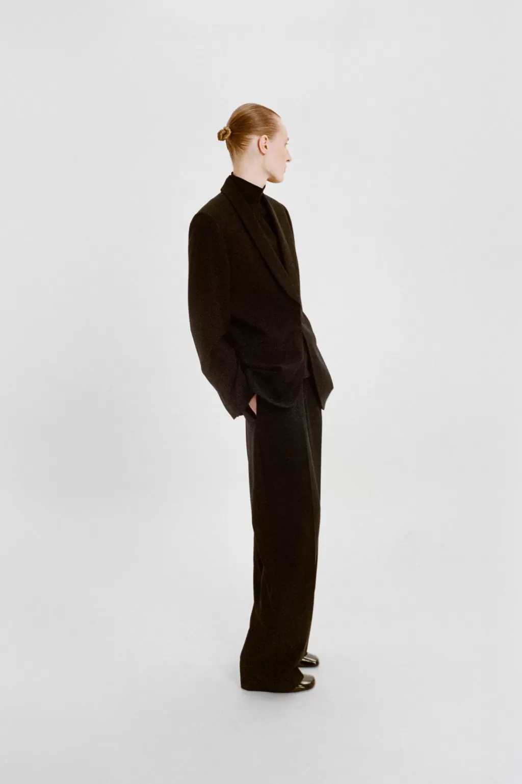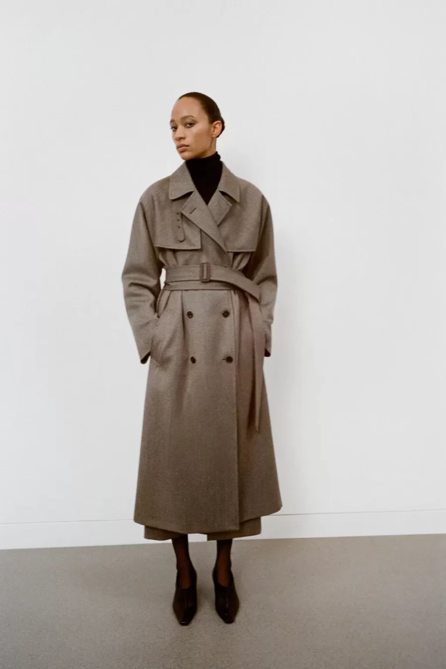 Returning to a more polished and understated aesthetic, The Row moves away from the oversized proportions of previous seasons. Ashley and Mary-Kate Olsen present a collection that explores the softness of layering and the perfection of detail, featuring a subtle colour palette of navy blue, chocolate brown, and slate “fossil” grey.