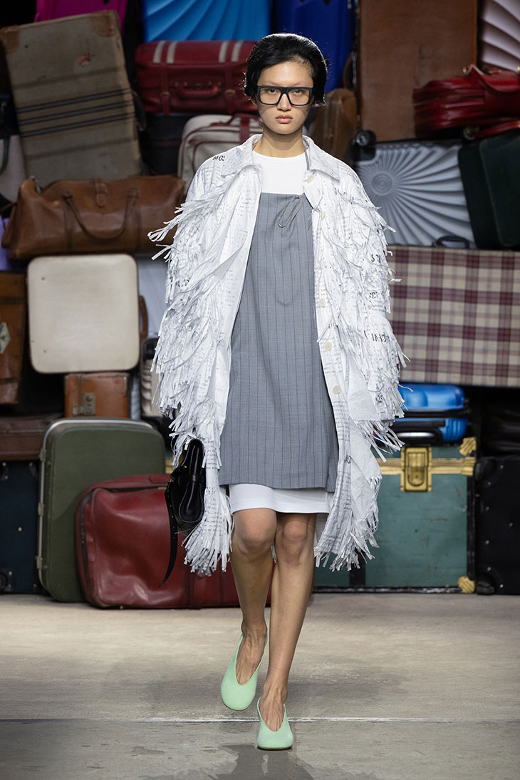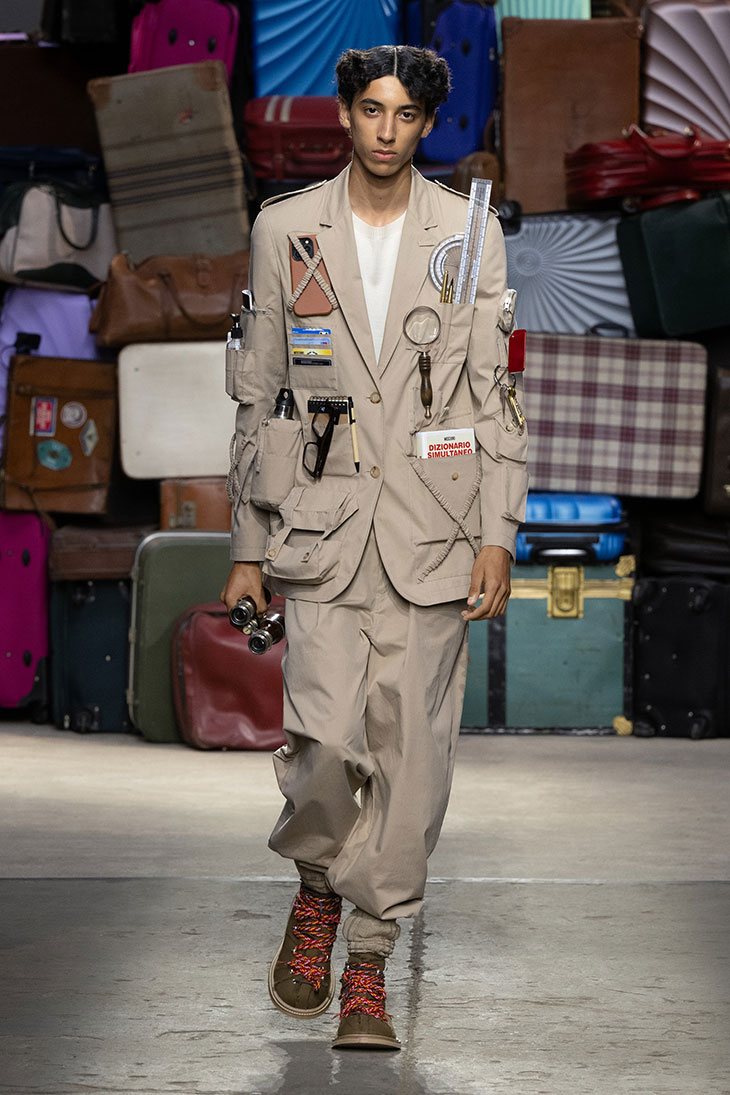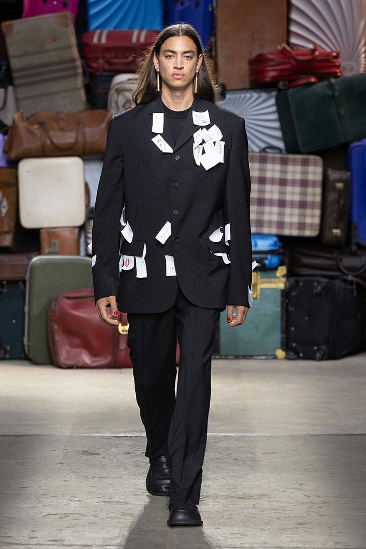 Inspired by the journey from urban chaos to the discovery of freedom, the collection invites a journey of exploration both externally and internally. Moschino transforms traditional tailoring, breaking its boundaries and reconstructing it in innovative forms. Iconic elements from the brand’s past, such as 1990s prints and the “Survival” jacket from 1992, are reinterpreted with a contemporary approach, blurring gender lines and creating an inclusive wardrobe.