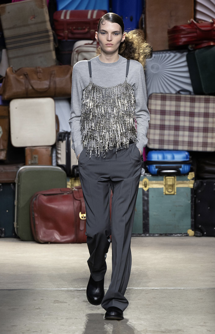 Each piece reflects Moschino’s adventurous spirit, from urban landscapes to the serenity of the Italian countryside. The runway show, enriched by the styling of Nunzio Del Prete, hairstyles by Eugene Souleiman, and makeup by Inge Grognard, celebrates the freedom to lose oneself and find oneself. Moschino reminds us that true beauty resides in authenticity and the unexpected paths of life.