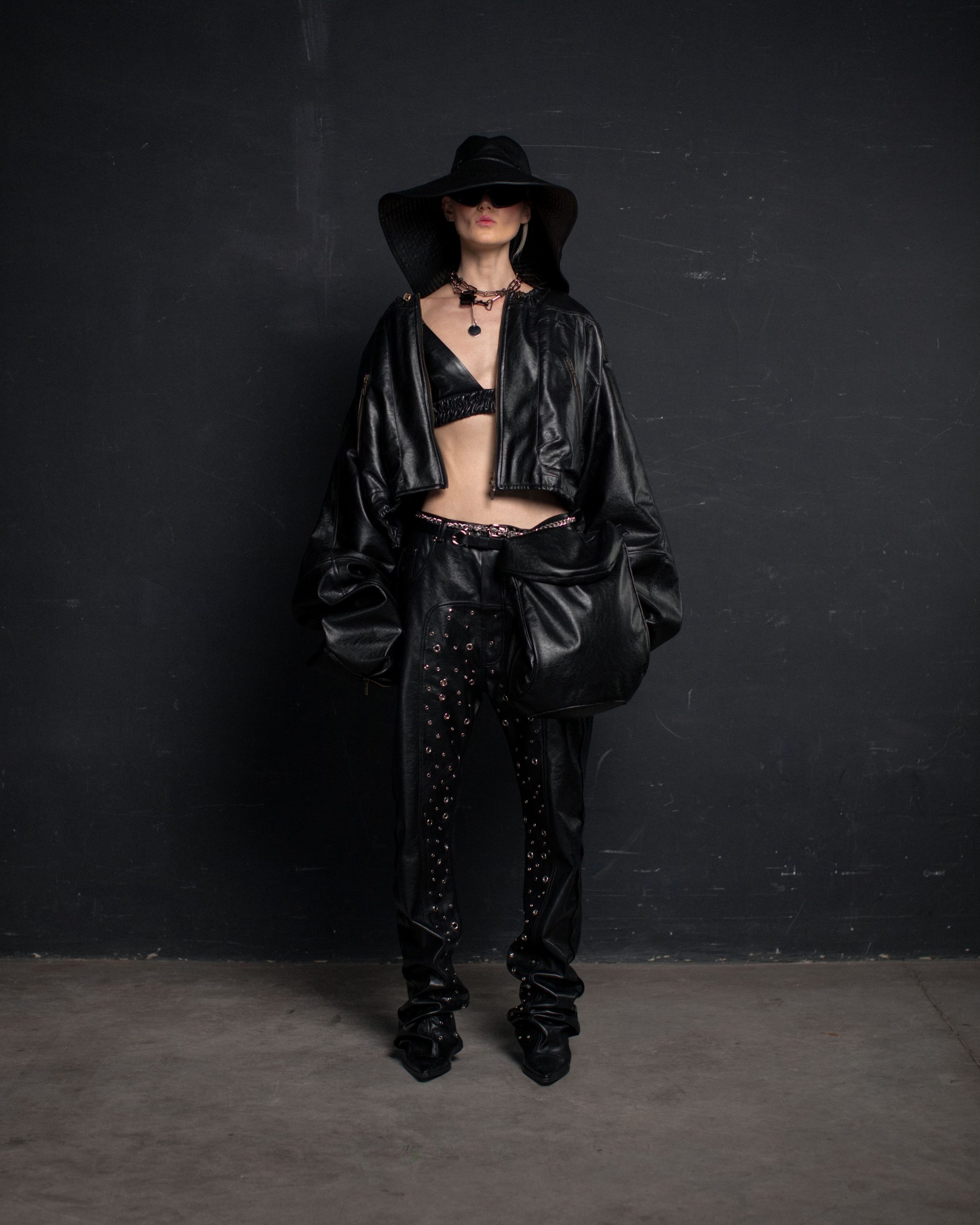 Extra-voluminous silhouettes symbolized shelter and camouflage, intertwining with straight and narrow shapes that conveyed gender fluidity. ‘THEO THE CREATOR’ surprised with tailored blazers, rustic fabrics, and 3D jacquard, showcasing a stylistic maturity.