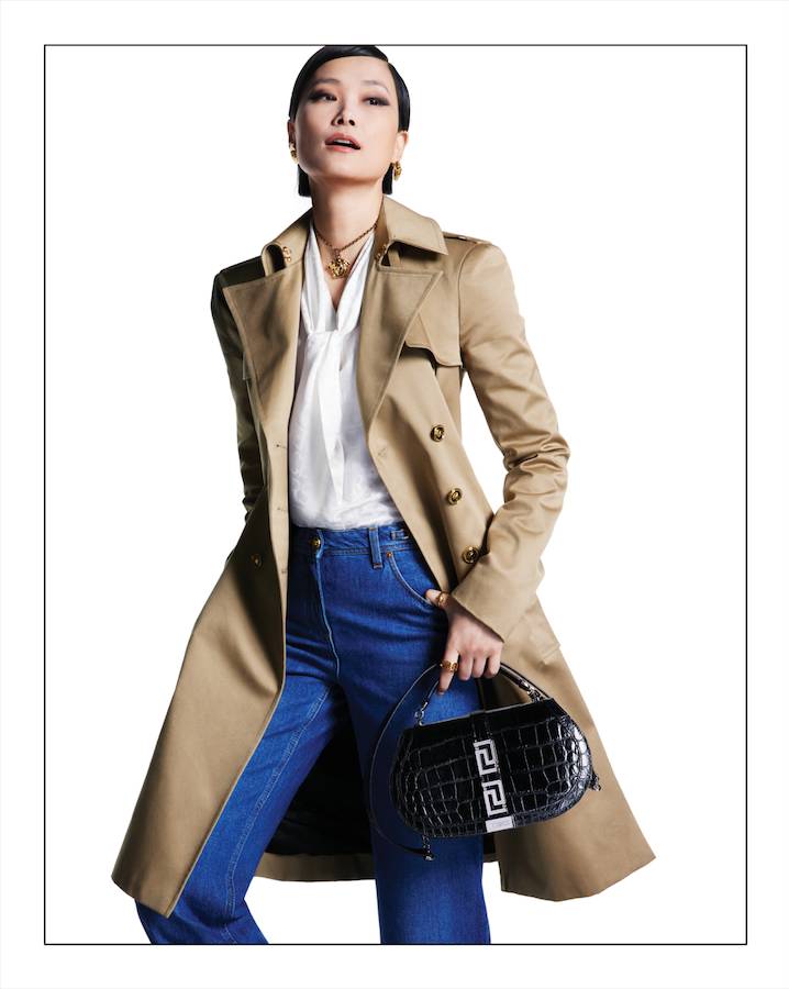 The Versace Icons Collection merges these powerful brand symbols into iconic wardrobe pieces. Key pieces include soft nappa leather coats and jackets, versatile jeans for all occasions, and the perfect trench coat with golden buttons adorned with the house’s distinctive Medusa.
