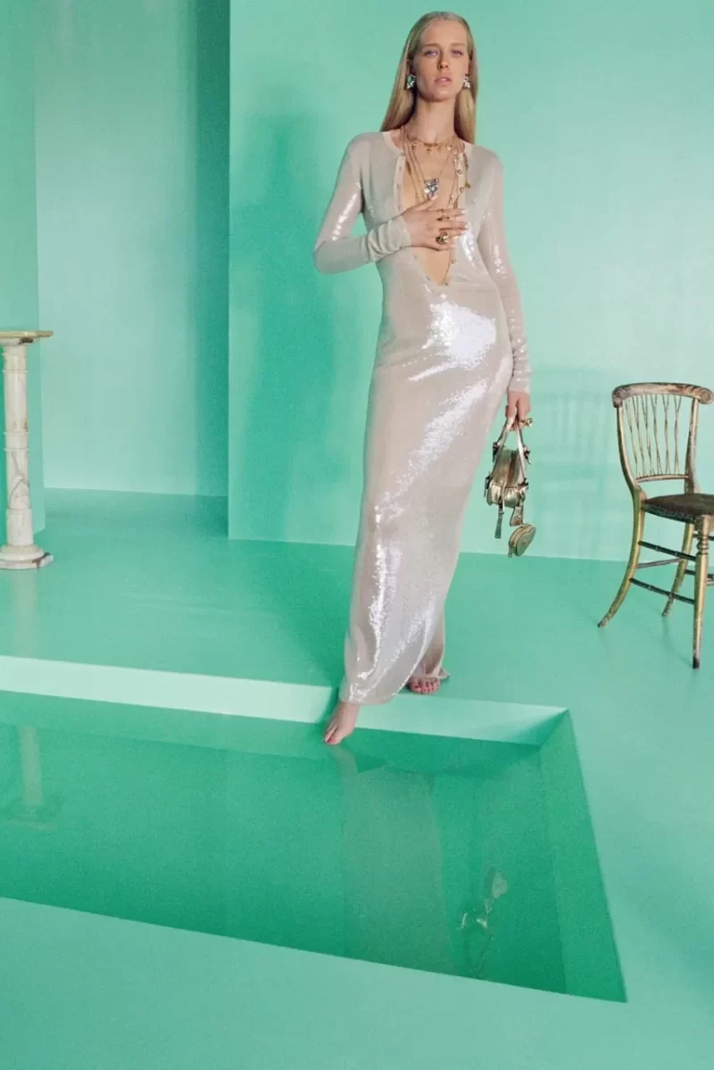 The collection’s distinctive touch lies in its embellishments inspired by marine treasures, paying tribute to the sea’s natural elements. Versace’s ‘La Vacanza’ not only celebrates the beauty of the coast but also the dynamic lifestyle that embraces both luxury and sustainability.