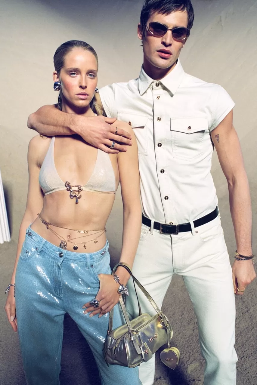Photographer Zoë Ghertner captured the campaign against natural backdrops of sun, sea, and sand, creating a relaxed yet elegant atmosphere. The collection stands out for its innovative transformations: swimsuits that turn into corset-style tops, tailored jackets, and dresses with safety pins that reimagine the female silhouette. In addition, pleated skirts and sheer cover-ups elevate the notion of casualwear, while silk shirts are transformed into sophisticated blouses and cardigans.